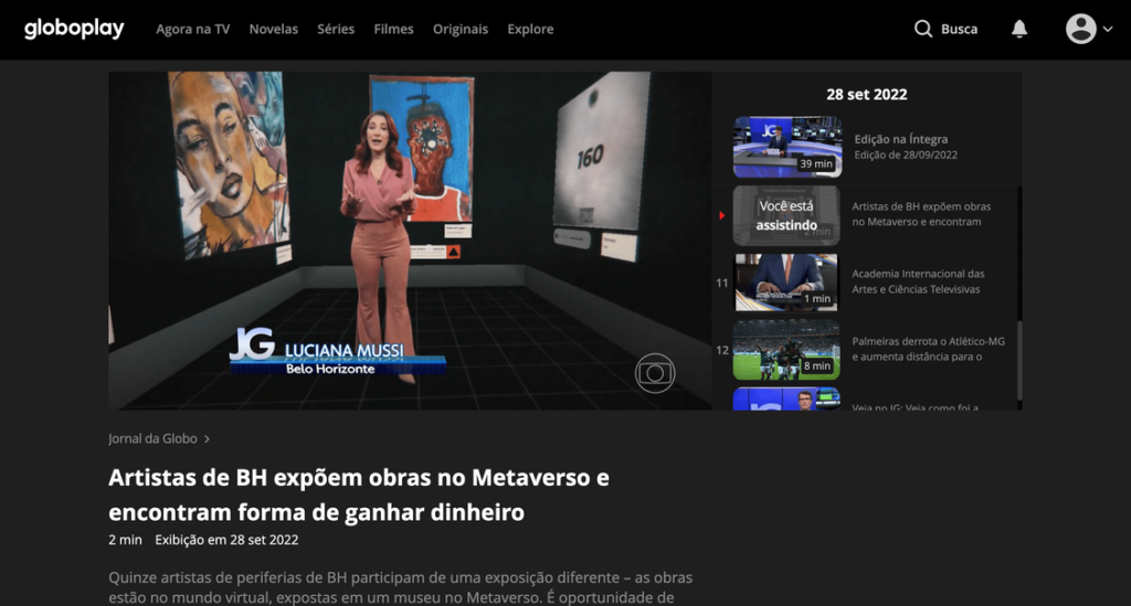 No dia 28 de setembro foi transmitida pelo Jornal da Globo a reportagem sobre o projeto CryptoSerrão e a exposição do projeto no Distrito XYZ.